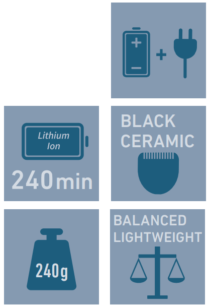 ∙ inkl.: 4 Aufsteckkämme (1,5; 3; 4,5; 6 mm), Ladestation, Reinigungspinsel, Öl